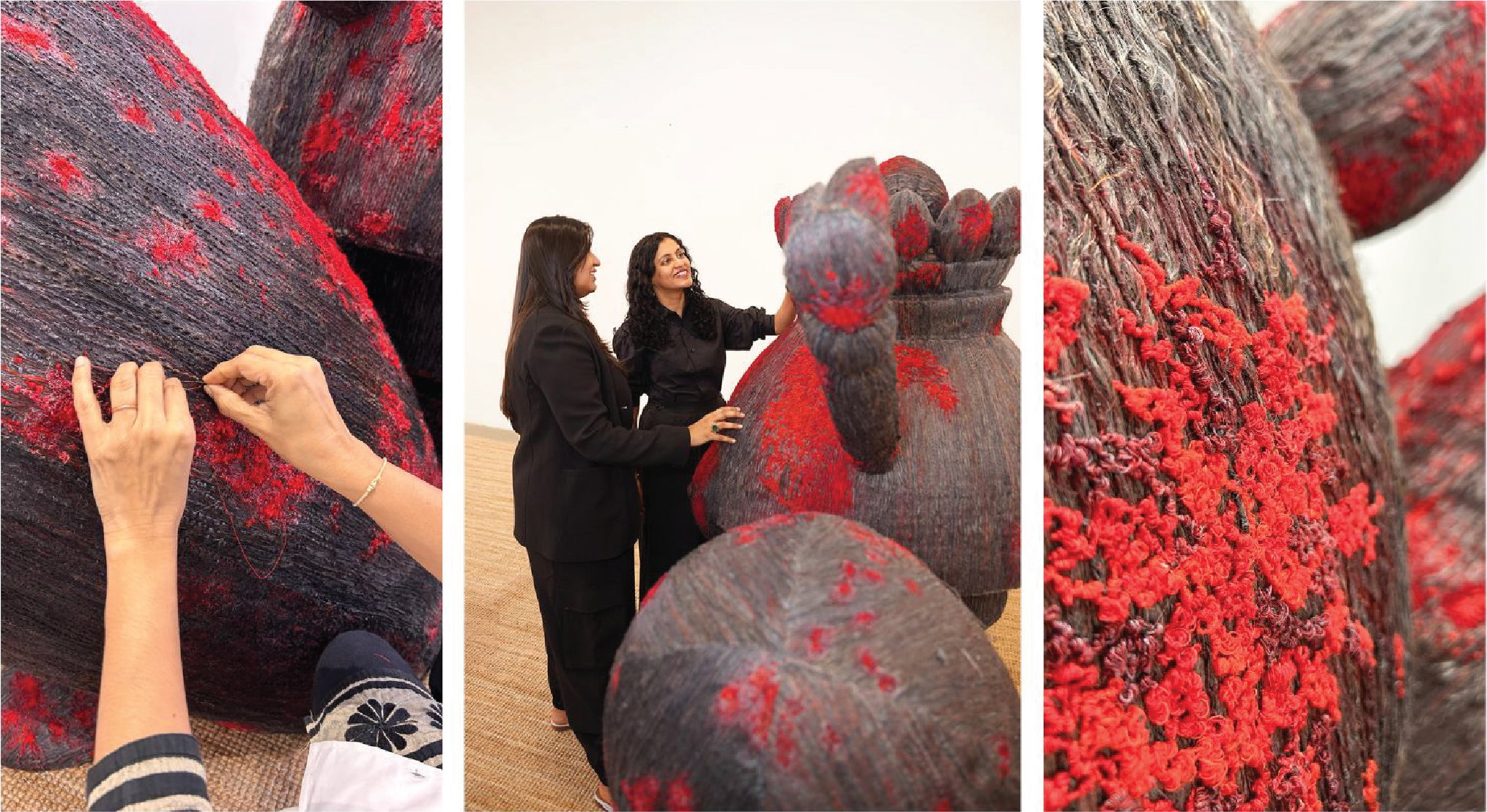 The project reflects a profound convergence of methodologies: Preenja’s sculptural inquiry into maternal resilience and the Chanakya School’s craft-led approach grounded in collective authorship.